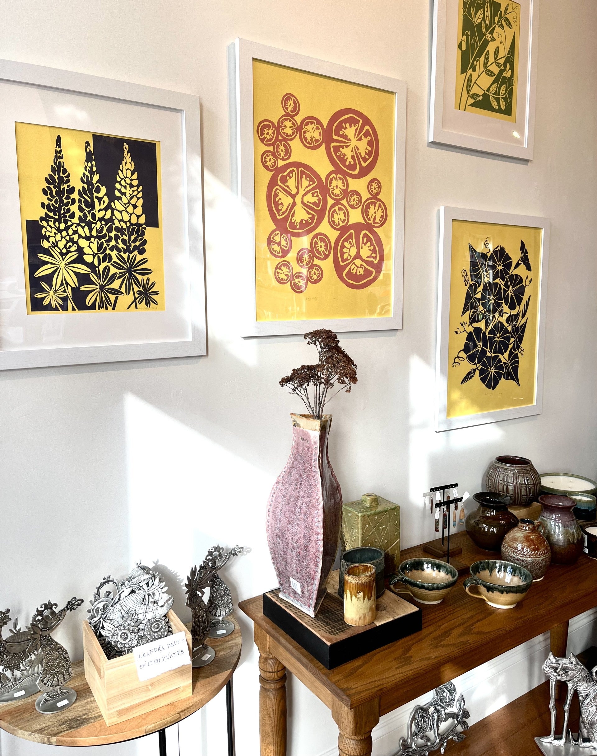 Two toned original framed silk screen by Maine artist, Emily Cady.