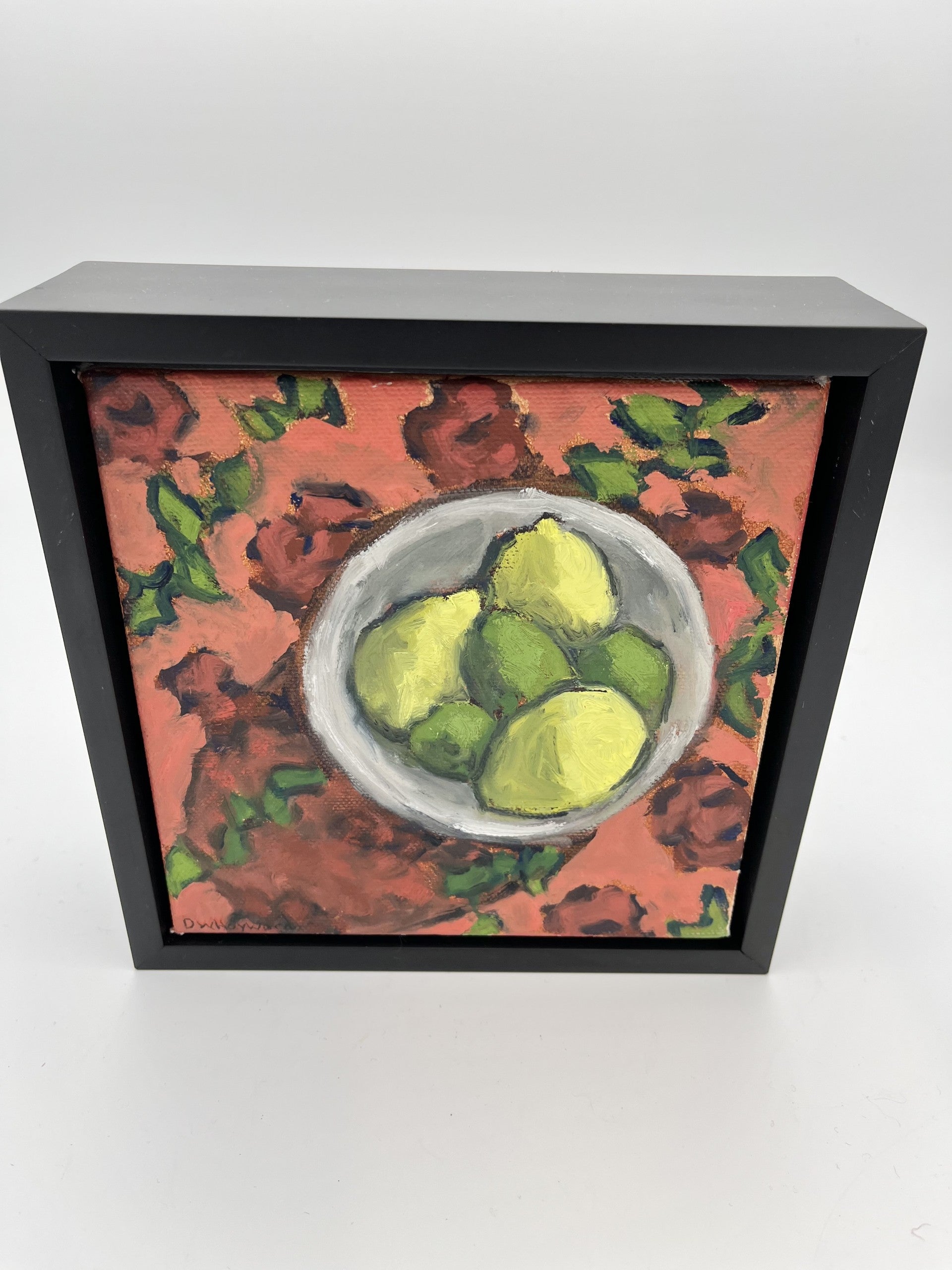 6x6 oil on canvas by Dave Hayward. Contemporary 2" black frame, wired on the back for easy hanging.